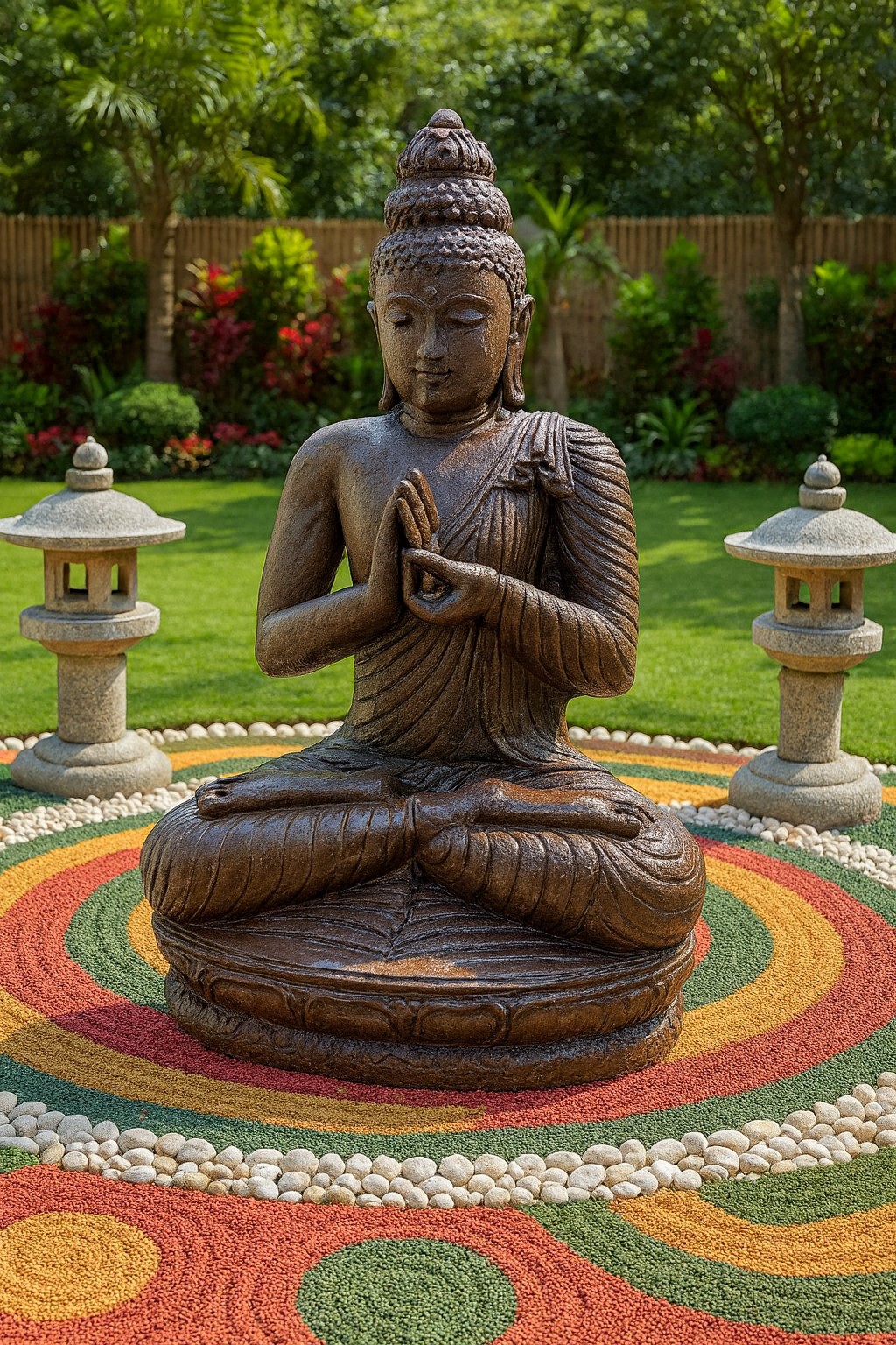 Meditating Buddha sculpture for garden decoration. Available in deferent colours.