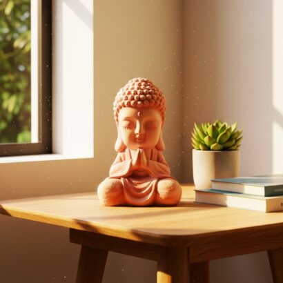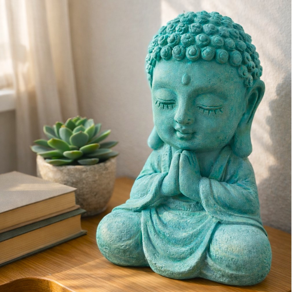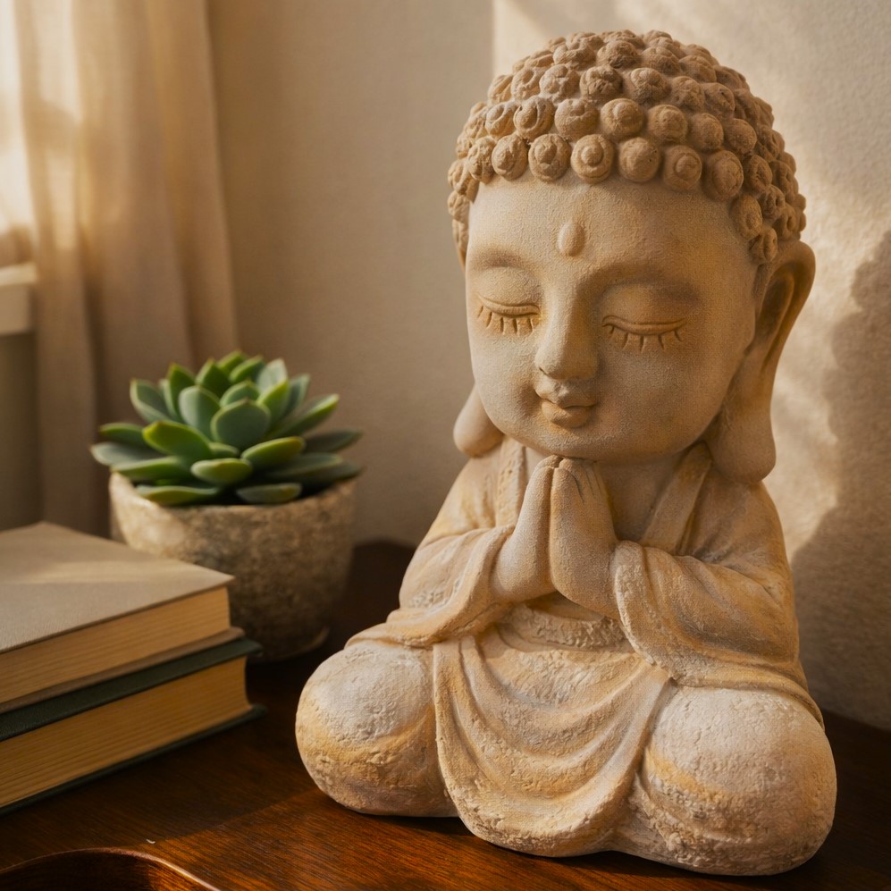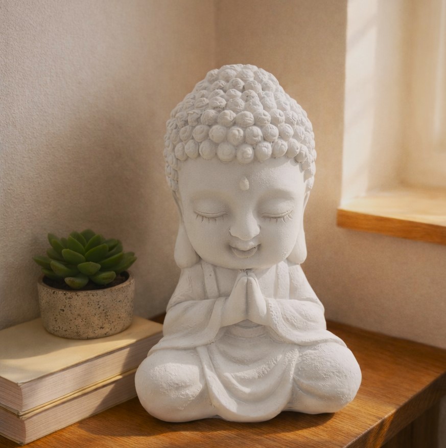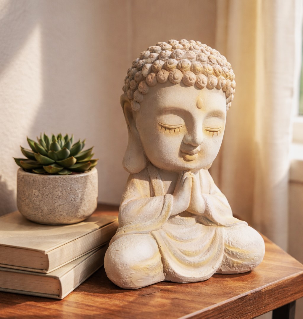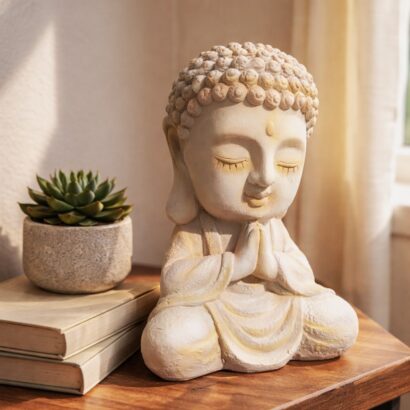This solid fiberglass Buddha sculpture features a serene, meditative pose with finely detailed facial expressions and textured curls. Finished in a soft, earthy tone, it brings a calm and harmonious presence to any interior space. Lightweight yet durable, it is ideal for tabletops, shelves, meditation corners, or zen-inspired décor, adding a touch of peace and elegance to modern or traditional settings.
