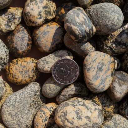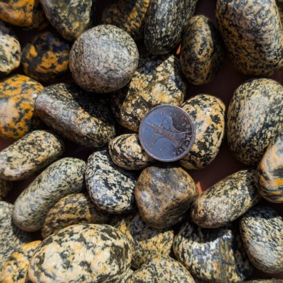 Premium tiger pebbles (zebra pebbles) for landscaping and garden decoration.