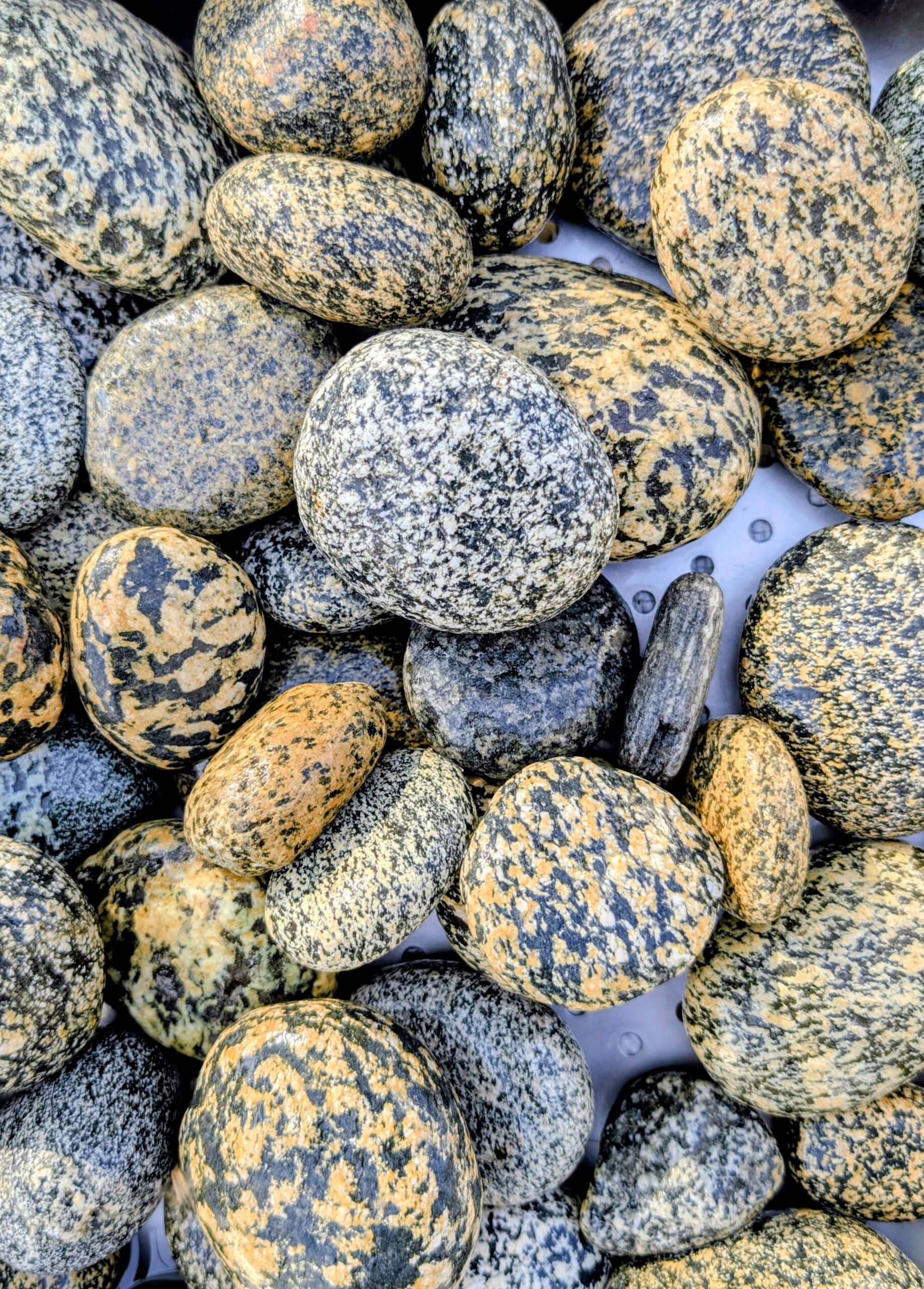 Premium tiger pebbles (zebra pebbles) for landscaping and garden decoration.